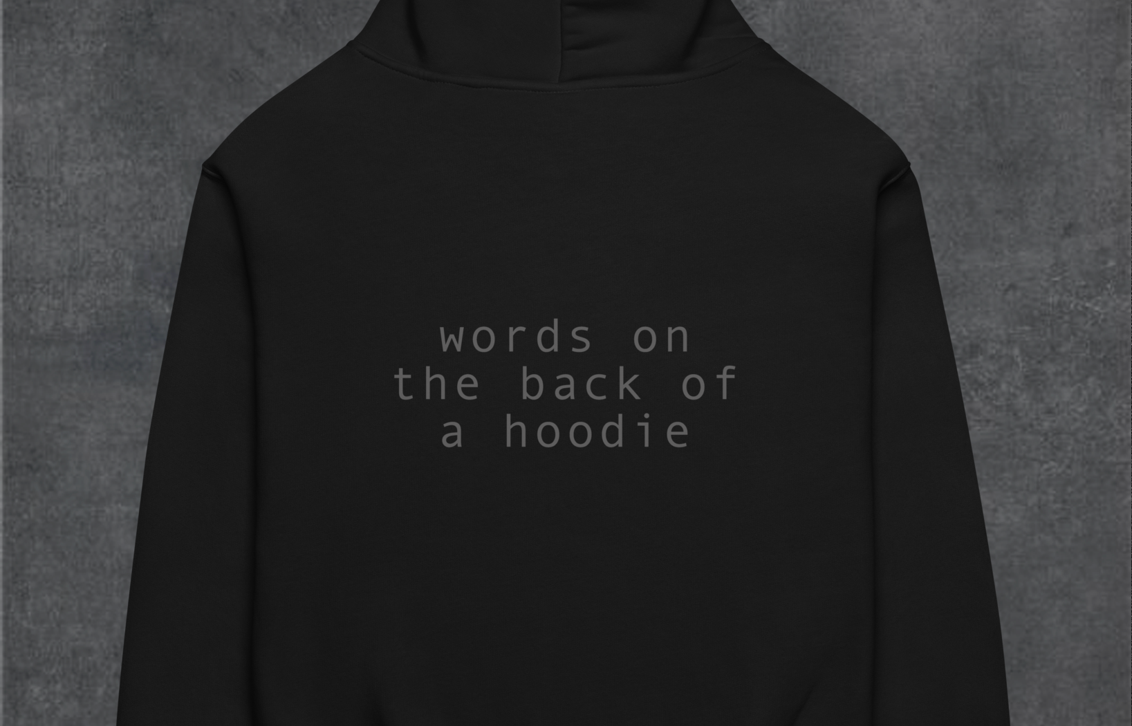 Text printed on the back of the garment.